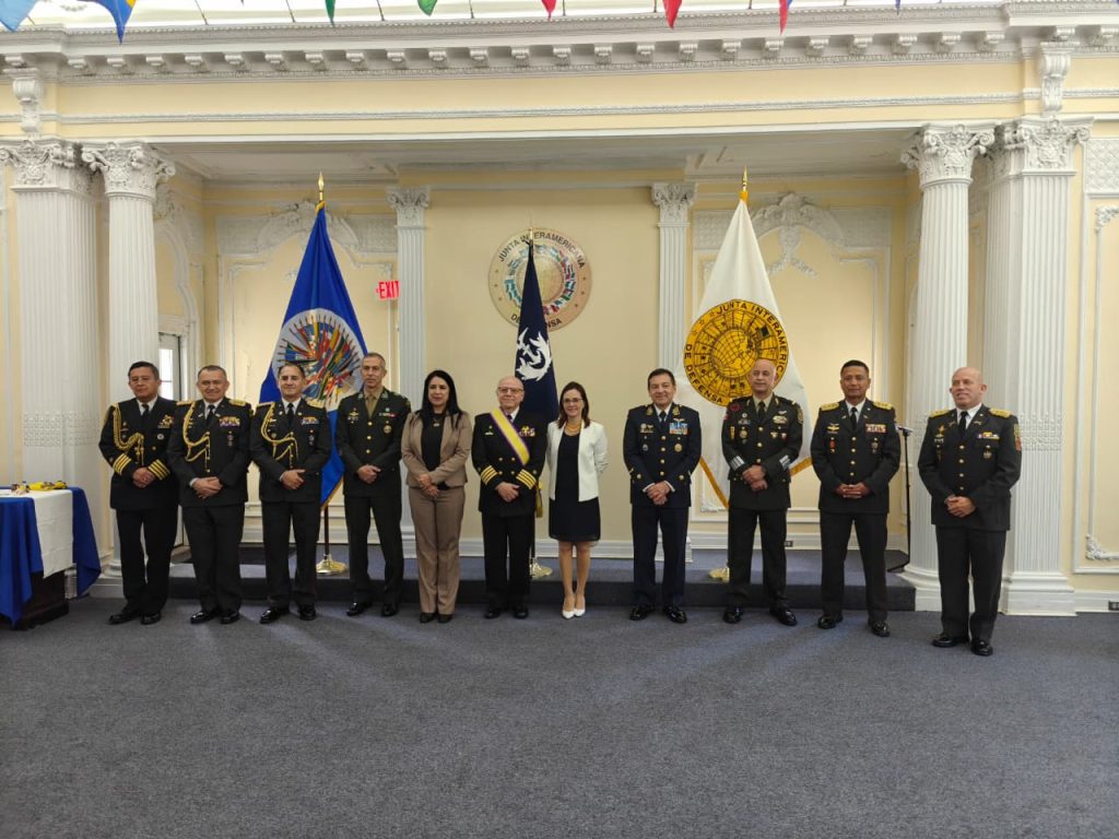 The event was attended by the IADB leadership, Minister Mónica Sánchez, Ecuador's Representative to the OAS, Ms. Mónica Real, Counselor of the Permanent Mission of Ecuador to the OAS, Defense, Naval, and Air Attachés, the Principal Delegate of Ecuador to the IADB, the OAS-IADB-CID Liaison Officer, relatives of the award recipient, and included the participation of all officers, non-commissioned officers, and technicians accredited to the IADB.