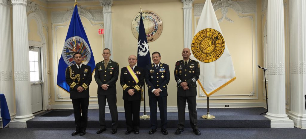 On November 3rd, at the facilities of the Inter-American Defense Board, the Commemorative Ceremony for the 193rd Anniversary of the creation of the Ecuadorian Navy was held, and the Grand Collar of Honor for Military Merit was awarded to Captain Jorge Saldana. Captain Boris Brito, Naval Attaché of Ecuador in the USA, representing the Ecuadorian Navy, presented the medal and in his remarks affirmed that “…it is particularly significant to commemorate this anniversary within the framework of the Inter-American Defense Board, a hemispheric institution that embodies the ideal of continental cooperation and that, since 1942, has united the armed forces of the Americas under a common purpose: to strengthen collective defense, promote mutual trust and foster education and coordination on multidimensional security.”