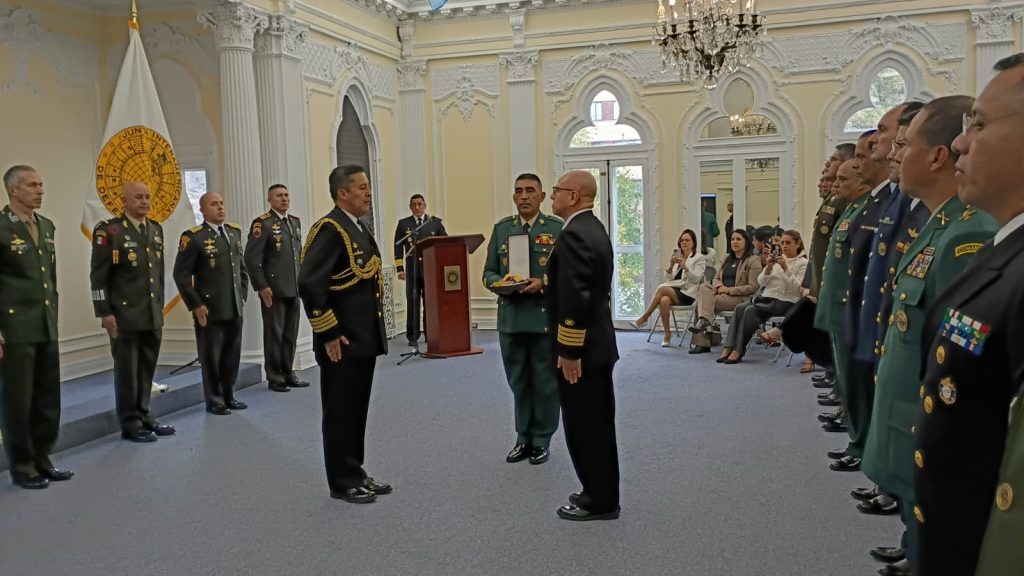 On November 3rd, at the facilities of the Inter-American Defense Board, the Commemorative Ceremony for the 193rd Anniversary of the creation of the Ecuadorian Navy was held, and the Grand Collar of Honor for Military Merit was awarded to Captain Jorge Saldana. Captain Boris Brito, Naval Attaché of Ecuador in the USA, representing the Ecuadorian Navy, presented the medal and in his remarks affirmed that “…it is particularly significant to commemorate this anniversary within the framework of the Inter-American Defense Board, a hemispheric institution that embodies the ideal of continental cooperation and that, since 1942, has united the armed forces of the Americas under a common purpose: to strengthen collective defense, promote mutual trust and foster education and coordination on multidimensional security.”