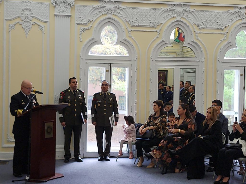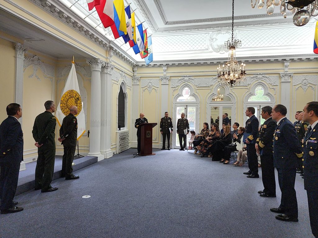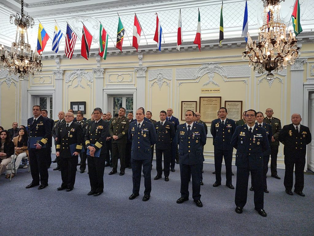On October 29, 2025, in the Hall of Flags at the Soldiers' House, the Inter-American Defense Board (IADB) Medal Conferral Ceremony was held for officers and technicians completing their service in November and returning to their home countries. Family members and all military personnel participated in the event, which was presided over by the IADB leadership. The recipients were Commander Ricardo Barillo, Coordinator of the Inter-American Organizations Section of the Brazilian Ministry of Defense; Colonel Juan Alarcón, Vice-Secretary of Service; Captain Jorge Saldana, Vice-Secretary of Service; and Technician Rubén Romero, Human Resources Advisor.