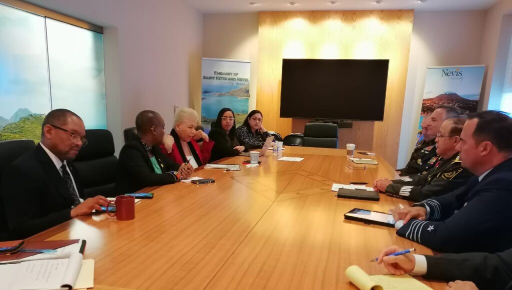 La reunión se llevó a cabo en la Embajada de Saint Kitts y Nevis en Washington, D.C., sede de la Embajadora Jacinth Henry-Martin, Representante Permanente de San Kitts y Nevis ante la OEA y actual Presidenta de la Comisión de Seguridad Hemisférica de la OEA, quien en la ocasión estuvo acompañada por la Embajadora Luz Elena Baños Rivas, Primera Vicepresidenta de la CSH-OEA; por la Consejera Pamela Polanco Jorge, Segunda Vicepresidenta de la CSH-OEA; y por la Primera Secretaria Claudia Andrea Escobar Rey, Tercera Vicepresidenta de la CSH-OEA.