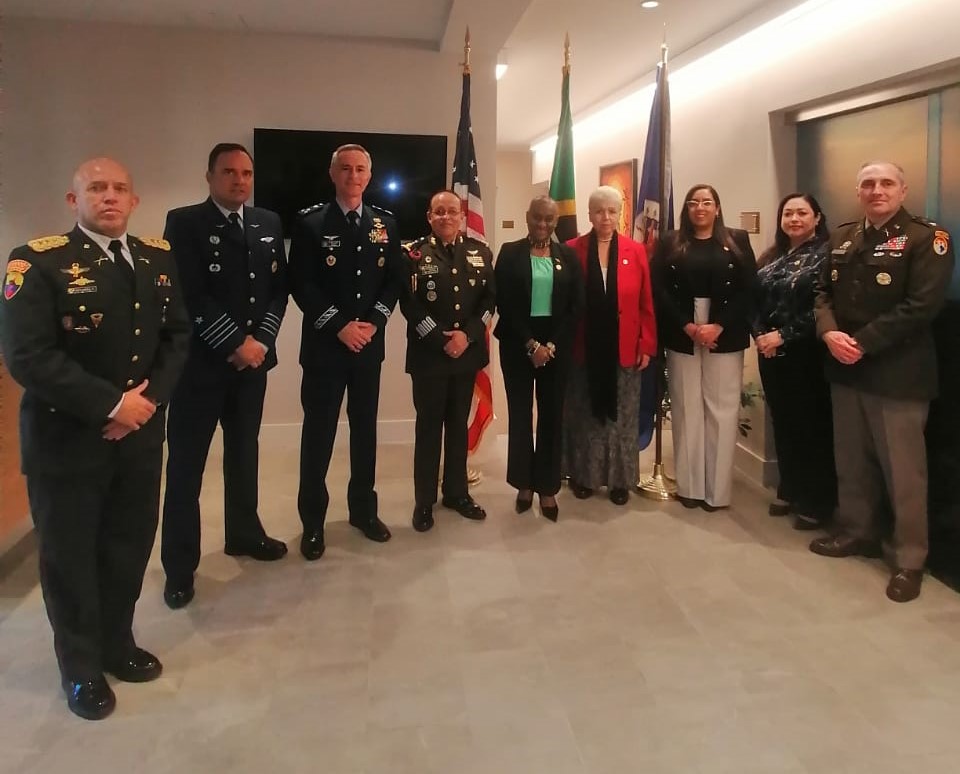 La reunión se llevó a cabo en la Embajada de Saint Kitts y Nevis en Washington, D.C., sede de la Embajadora Jacinth Henry-Martin, Representante Permanente de San Kitts y Nevis ante la OEA y actual Presidenta de la Comisión de Seguridad Hemisférica de la OEA, quien en la ocasión estuvo acompañada por la Embajadora Luz Elena Baños Rivas, Primera Vicepresidenta de la CSH-OEA; por la Consejera Pamela Polanco Jorge, Segunda Vicepresidenta de la CSH-OEA; y por la Primera Secretaria Claudia Andrea Escobar Rey, Tercera Vicepresidenta de la CSH-OEA.