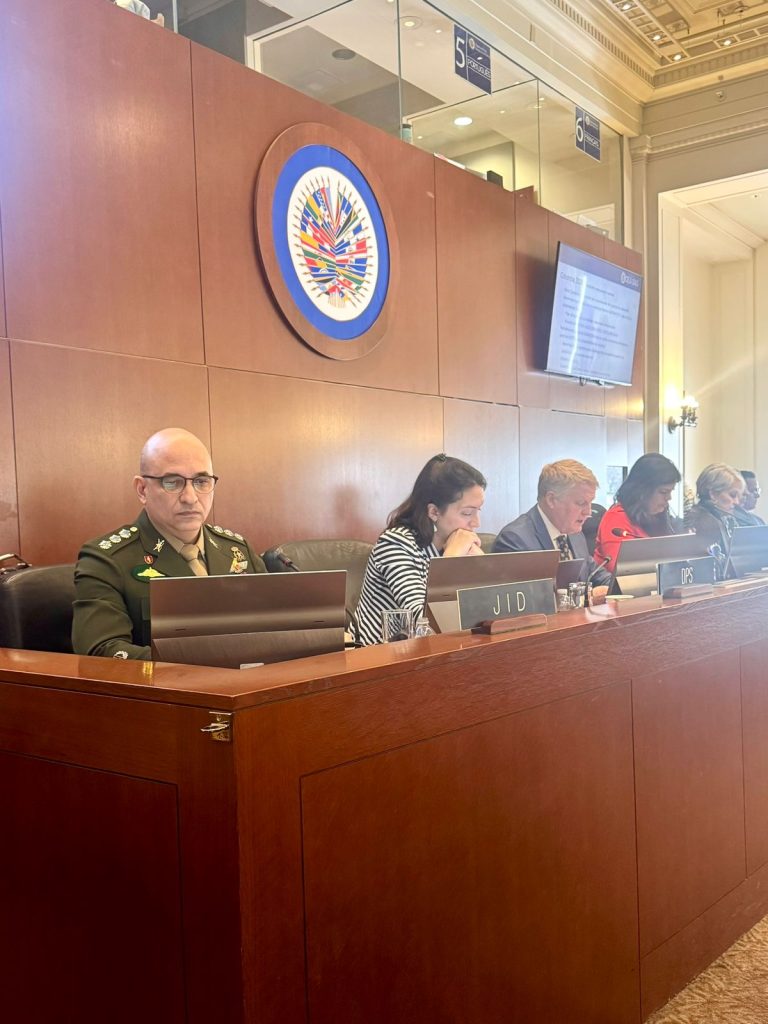 Durante su intervención, el General Salgado destacó la importancia de fortalecer las acciones de desminado humanitario en la región, subrayando la valiosa contribución de la JID en apoyo a los países afectados por minas antipersonales. Por su parte, el Coronel De Souza presentó un informe ejecutivo sobre los avances y desafíos en la implementación de programas de desminado, exponiendo métricas significativas alcanzadas mediante el trabajo conjunto entre la JID y la OEA.