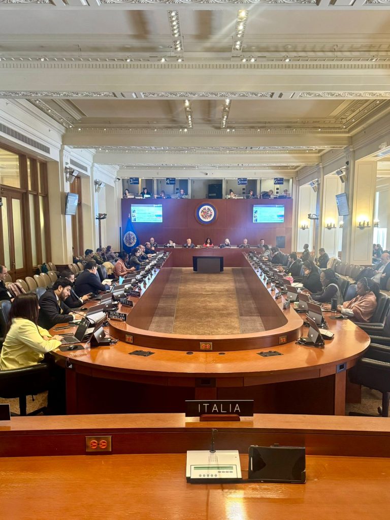 La reunión se llevó a cabo en el Salón Simón Bolívar de la sede principal de la OEA en Washington, D.C.