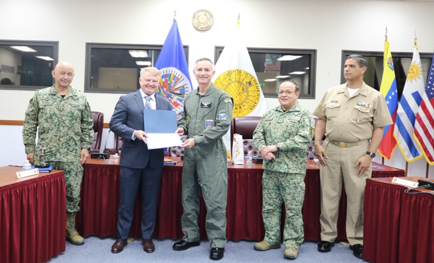 El día viernes 16 de mayo del presente año la Junta Interamericana de Defensa recibió la honrosa visita de los discentes de las maestrías en Seguridad Nacional y Geopolítica del Centro de Estudios Navales de México (CESNAV). La delegación estuvo presidida por el director del CESNAV, señor Vicealmirante José Orozco Tocaven.